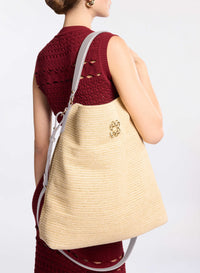Designed with a spacious, relaxed silhouette, this raffia beach bag in Elephant Grey is a nod to the spirit of adventure. Featuring a structured leather strap and subtle detailing, the beach bag is the perfect companion for summer outings.
