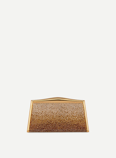 Timeless sophistication meets modern allure. This exquisite piece is crafted from the finest beige embellished suede leather and adorned with brown ombre Swarovski crystals. Expertly made in Italy, every detail reflects meticulous craftsmanship, effortlessly elevating any ensemble. This unique design is the quintessential companion, making a statement at every occasion.