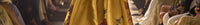 Look 7 awakens in a reverie of color and motion. The strapless gown in saffron-colored organza, printed with multicolored flowers in a painted effect, radiates effortless elegance. Paired with a blush pink feather stole, the gown beams like a muse bathed in morning light.