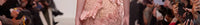Look 4 evokes the delicate blur of petals in motion, where lightness and shimmer meet in a single sweeping gesture. The strapless mermaid gown is crafted in silk tulle, adorned with soft pink feathers and inlaid with tone-on-tone crystals and silver pearls. A long train trails behind, enhancing the silhouette with ethereal movement.