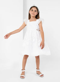 Delicate and timeless, this white embroidered dress for kids is a vision of elegance. Crafted with intricate floral embroidery, sheer puff sleeves, and a soft flared skirt, this dress is ideal for special moments.