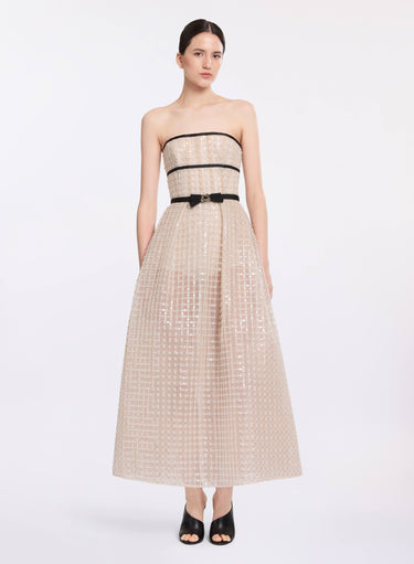 Strapless pearl midi dress