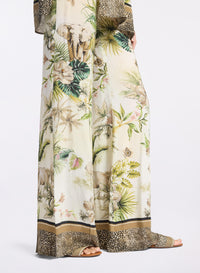 These Savannah print chiffon pants in a rich, multi-tonal pattern offer a relaxed yet sophisticated silhouette, perfect for daywear. Crafted in viscose, they feature slash side pockets and a full-length, wide-leg flared silhouette. Pair these printed pants with Elie Saab’s raffia and leather bag for an elevated look.