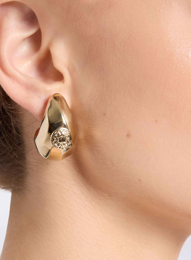 Bold and modern, these gold-tone earrings feature a sculptural silhouette accented with an intricate monogram detail, bringing a strong, polished finish to any ensemble.