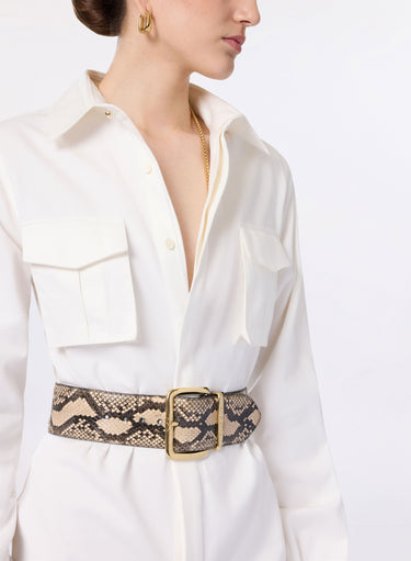 Sophisticated and refined, this python leather belt is defined by its striking gold-tone buckle, designed to accentuate the waist with sculpted elegance. Whether paired with tailored separates or fluid silhouettes, the ELIE SAAB belt brings polished definition to any ensemble, offering a timeless finishing touch that elevates every wardrobe.