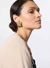 These gold-plated metal flower earrings capture the subtle beauty of nature, bringing sophistication to both daytime and evening looks.